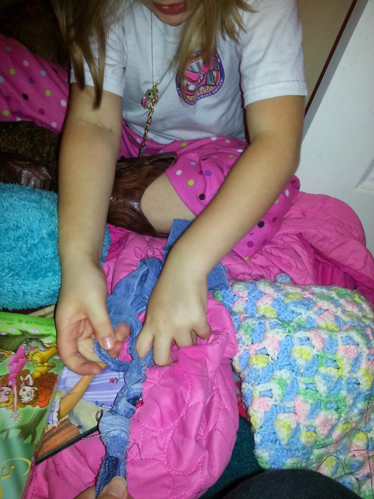 We wound up with simple gifts for four of our closest four-legged friends!Recycled denim dog toy. Great idea for Daisy animal journey or for scout service project for an animal shelter.